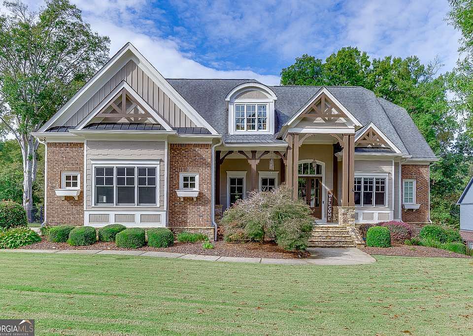 Exquisitely designed and thoughtfully crafted, this custom 5-bedroom, 3.5-bathroom ranch with a finished terrace level is set on a sprawling one-acre homesite in the prestigious, gated community of Scenic Falls of Braselton. Surrounded by natural beauty and backing up to the falls, this residence offers the perfect blend of elegance, comfort, and privacy. A grand Southern-style front porch sets the stage for what's inside. The main level welcomes you with a formal dining room, private office, and an expansive great room that flows seamlessly into the gourmet kitchen. Appointed with custom cabinetry, granite countertops, stainless steel appliances, and a bright breakfast area, the kitchen is both functional and inviting. The luxurious Owner's suite boasts an oversized spa-inspired bathroom and direct access to the oversized deck overlooking the serene backyard. Two spacious secondary bedrooms, sharing a full bath, are tucked away in a private wing of the home. The finished terrace level extends the living space with a gym, office, two additional bedrooms, a full bathroom, full kitchen, and large great room-perfect for guests or multi-generational living. Unfinished workshop and storage areas add flexibility, while the walk-out patio leads to the beautiful, level backyard. Completing this rare gem are the resort-style amenities including a swimming pool, clubhouse, playground, tennis and pickleball courts, and walking trails with scenic waterfalls. Experience the perfect mix of luxury and tranquility at 411 Meadow Lake. Schedule your private tour today.