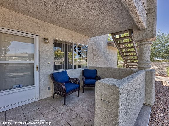 This amazing lower unit Rock Springs condo is a must see! As you walk in you will find a great open floor plan with spacious living room and kitchen with great natural light. Down the hall you will find A large master with a roomy closet and bathroom. Across the hall sits the guest bedroom just next to the guest bathroom. Also in the hall lies the laundry with double folding doors. This condo has been beautifully upgraded with new LVP flooring, newer appliances, luxurious tiled showers and even high seat toilets! Out front you will find a large covered patio with lush green landscaping and large trees. Just off the parking lot sits the outside storage, perfect for bicycles & extras. This condo is located in the small community of Rock Springs 1, close to the Eureka & Virgin River Casinos. Also available with this community is RV parking just across from the condo. RV parking is an additional monthly charge and needs to be set up with the HOA. If you are looking for an amazing, upgraded, lower level condo, in Mesquite.... This is it!