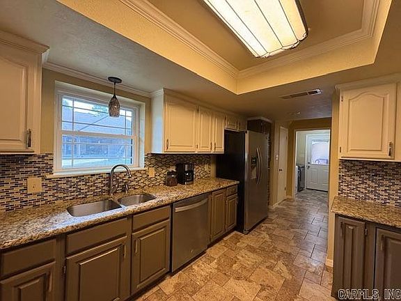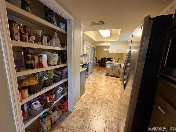 411 Mockingbird Lane Prescott AR 71857 $242,000 • Built in 1989. • 2,438 sq ft, per tax card. • 0.34 acre lot. • 3 bedrooms/2.5 bathrooms. • Primary bedroom: private outside access, double closets with built-ins, double vanity, linen closet, large tile shower with multiple shower heads. • Spare bedrooms share a jack & jill bathroom. • Dishwasher, 2025. • Refrigerator conveys. • Pantry. • Flooring, 2023. • HVAC, 2023. • Roof, ~2017. • Laundry room, with sink. • 2 hot water heaters, 2023. • Double garage. • Garage door motor, 2025. • Gas: Fireplace, both water heaters, furnace. • All locks have been replaced. • Trees cut, 2023. • Outside water faucet, 2025. • Fenced-in back yard. • Brick exterior. • Parcel 070-01988-001. • Estimated Real Estate Taxes: $1,610 - $600 homestead tax credit = $1,010.