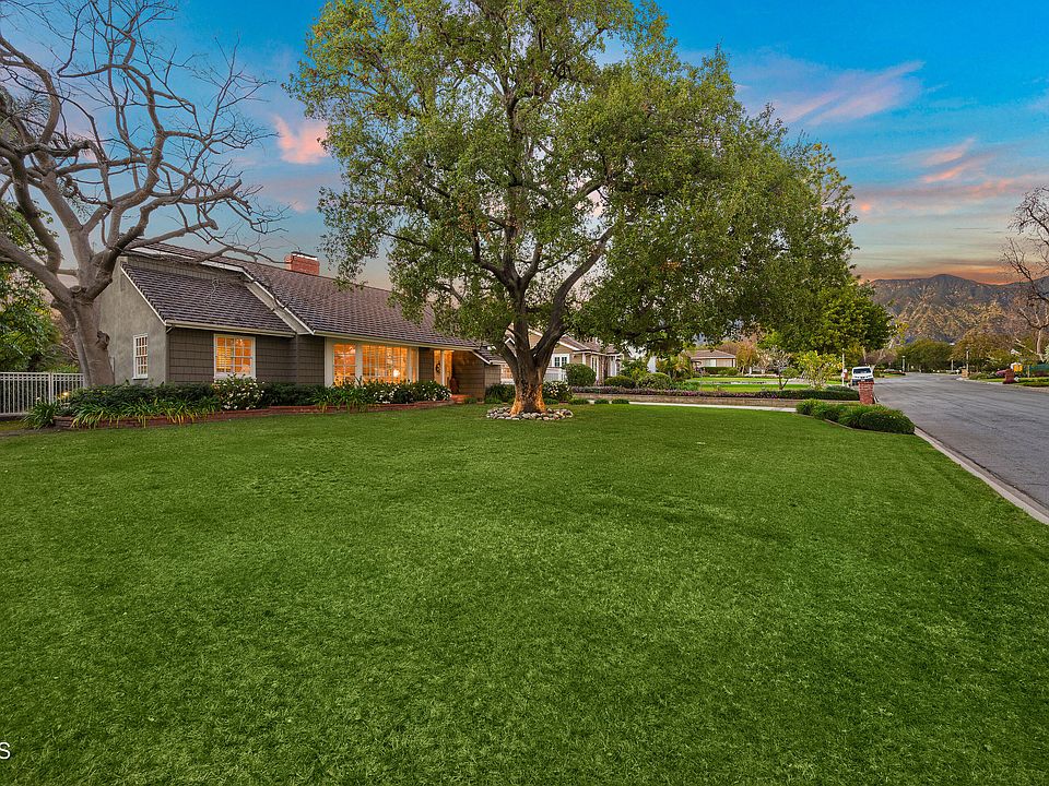 Welcome to this sophisticated single-level traditional style Cape Cod home in the Lower Rancho neighborhood of Arcadia. Offering 3 bedrooms, 2.75 baths, and a den with a fireplace, this home is 2,587 SF per tax assessor on a spacious 12,560 SF lot. Enter the home through the welcoming entry, which features sidelight windows, and flows to the formal living room, which has a fireplace, plantation shutters, and a bay window. The dining room features wainscoting, a beautiful chandelier, and views of the large mature oak tree in the front yard. Next to the dining room is the light-filled kitchen with high-end appliances, including the refrigerator, Bosch dishwasher, six burner Viking stainless steel stove with griddle, Viking hood, new quartz counters/backsplash, a center island, and plenty of storage. The family room is open to the kitchen and features French doors to the covered brick porch and rear yard. The home is laid out well for entertainment, with great access to the yard as well as offering privacy for the bedroom side of the house. The primary suite addition features a high ceiling, generous walk-in closet, a gorgeous main bath with a separate tub and separate stall shower, dual sinks, plus access to the covered brick porch. Both the front and rear yards are beautifully landscaped, offer patio space, garden lighting, and include a mature oak tree in the front yard plus magnolias, crepe myrtles and citrus trees. Additional features include detached two car garage, automatic driveway gate, central heating and air-conditioning, alarm system, separate laundry room with built-in storage and washer and dryer included, window coverings and light fixtures are included, hardwood floors throughout, recessed lights, updated roof. This pride of ownership home is move-in ready!