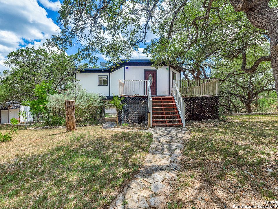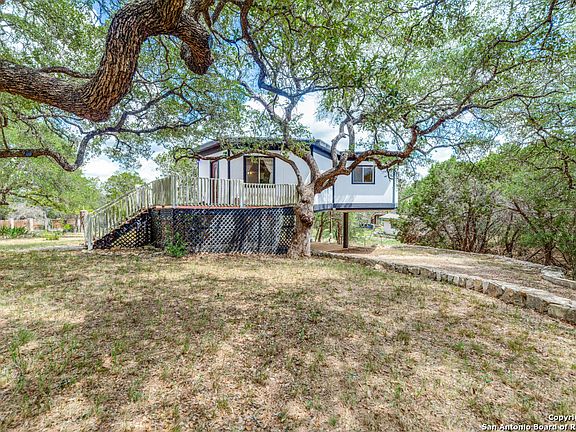 Nestled in the tranquil neighborhood of Bandera Falls, this elevated retreat offers a rare blend of serenity, space, and country living. Situated on a sprawling one-acre lot adorned with mature oak trees, this property promises a lifestyle of peace and natural beauty in the Texas Hill Country. The expansive lot invites you to embrace the country lifestyle with opportunities for gardening, raising chickens, or simply enjoying the open space. A versatile shed on the property can be transformed into extra living space, a studio, an office, or a workshop, catering to your specific needs and hobbies. Inside you'll find an excellent opportunity for personalized updates and modernization. The primary bedroom shines with its own private outdoor balcony, offering a peaceful spot to enjoy morning coffee or unwind under the stars. Two additional bedrooms provide versatility for family members, guests, or a home office, each offering comfort and privacy. A quick drive to Boerne, San Antonio, and Bandera ensures easy access to urban amenities while maintaining the peaceful ambiance of Hill Country living. As part of the homeowners' association, residents can walk down and enjoy exclusive access to the Medina River, perfect for fishing, kayaking, or simply enjoying the sounds of nature by the water's edge. Discover tranquility and natural beauty in this elevated retreat that captures the essence of being nestled among the trees. Don't miss out on the chance to make this elevated retreat your own. Schedule a showing today and envision the possibilities that await you in this Hill Country haven!