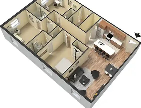 FURNISHED Brand new, 3 bedroom/3 bathroom apartments on the corner of 34th and Hamilton. Granite kitchens with all appliances. Granite bathrooms with custom tile showers and custom glass doors. Flat Screen TV in family rooms, alarm systems, front door monitors in every apartment. Off-street parking. On Site Fitness Center. Free laundry! Walk to Class