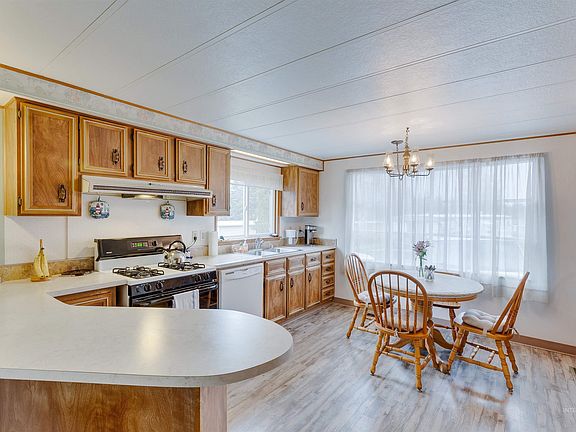 Pride of ownership, remodeled and ready to move-in. Updated windows, interior paint and carpeting accent this open concept manufactured home. Generous counter space and storage in kitchen. Updated roof and recent exterior paint. From your covered deck enjoy the well-maintained landscaping accented by many flower varieties including Roses, Hostas, Pionies, Lilies, Primrose, Clematis, English Daisy, Iris, Daffodil and Crocuses. Lots of room for gardening supplies in two storage units. Lot rent for new owner will be $775/month. Don't miss out on this gem.