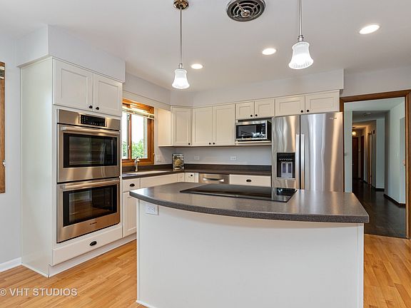 This home is meticulously maintained. Beautiful ranch across the street from Lake Linden. Gleaming hardwood floors welcome you just sanded & stained also freshly painted throughout in June. Large picture window in the living room. Separate dining room with sliders to a huge backyard with patio, great for entertaining. A half court basketball court. Gorgeous updated kitchen with white cabinets, stainless steel appliances, with double oven, island, eat-in area & tons of cabinet space. Three large bedrooms on the first floor. All the bathrooms have been updated. Full basement has a Rec Room with Wood Stove that can heat the whole house. It burns air from the outside, the warm stove air is integrated into the HVAC system. Also a half bathroom, 4th bedroom or office, plus a huge work room/storage area in the basement. This ranch has a true full basement. Home also has a Generac Automatic Generator. So many updates see list. Great neighborhood close to lake for fishing & skating, playground, tennis courts, McDonald Wood Forest Preserve. These owners have filled this home with love & care throughout the years. Welcome Home!