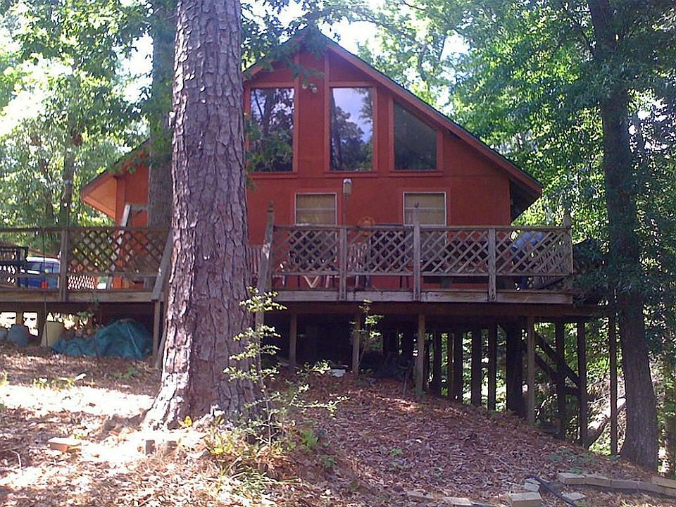Affordable lake get-away. Open floor plan with a loft and high ceiling. Cozy Ben Franklin stove. Nicely wooded with wrap around deck. Two nice storage buildings. All furnishings including (3) small boats remain. Nice private lake for homeowners use. Home Warranty included. Seller says bring offers.