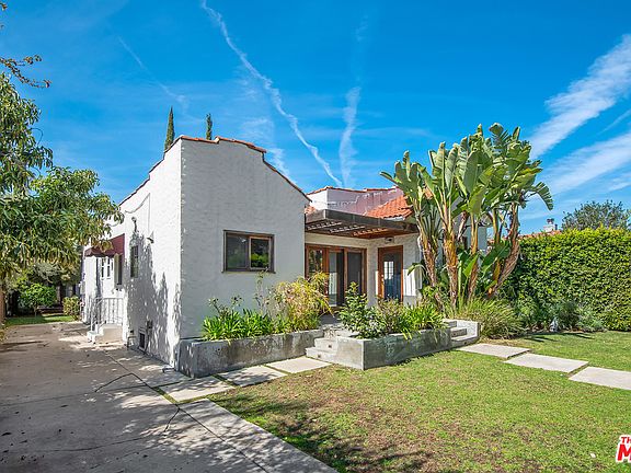 Updated Spanish gem surrounded by lush green hedges offers a private retreat in the Heart of Beverly Grove! The house features a warm living room with fireplace, separate dining and breakfast areas, a utilitarian kitchen, hardwood floors, inside laundry room, generous master bedroom with en-suite, central A/C & heating. The property is gated with a locked, keypad, entrance that can be remotely controlled from inside the house, has a large front yard and patio, a bonus room/office in the backyard with a large window & wall A/C unit, grassy backyard with patio, and 2-car driveway. Just minutes from shops, restaurants, entertainment and all that Beverly Grove has to offer!