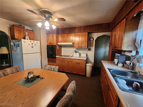 This charming 3-bedroom, 1-bathroom home features ample storage space and a cozy, inviting atmosphere. The main level includes 2 bedrooms, a full bathroom, a spacious living room, and a modern kitchen. Upstairs, you'll find an additional bedroom with plenty of storage & closet space. Step outside onto the covered porch & enjoy your morning coffee while taking in the peaceful scenery. The full basement offers plenty of storage and a laundry area with a full utility sink. Plus, this home has the option to be hooked up to a wood burner in the basement for added warmth & comfort.