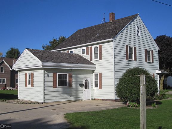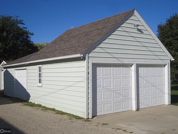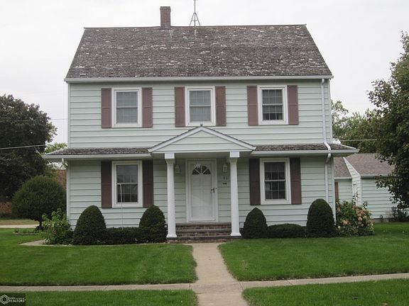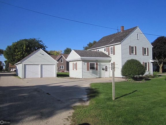 Located just a half a block north of downtown Buffalo Center, sits this charming 4 bedroom, 2 bath home that offers great curb appeal with the beautiful pillars and nice landscaping. Features on the main level include the kitchen, dining room, living room, a bathroom and an additional area with laundry and lots of closet space. Upstairs you will find all 4 bedrooms and a full bathroom. Enjoy the ample amount of natural light throughout this home! There is a 2-stall detached garage with a large 20' x 24' storage building attached.