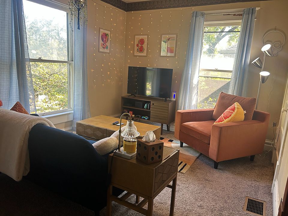 Great location close to campus. Huge apartment with 1 loft-style bedroom, eat in kitchen with full size refrigerator, newer oven/stovetop, and microwave, lots of windows for a bright and sunny apartment. Air conditioning, free laundry in the building, free parking, tons of storage space. Tenant is responsible for gas, electric, and internet. No pets, no smoking.