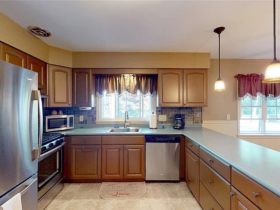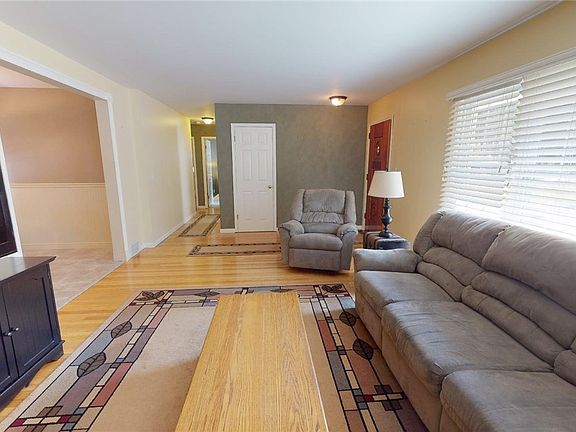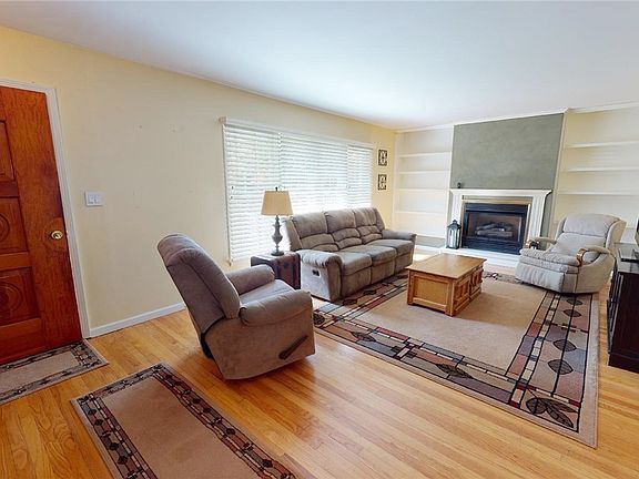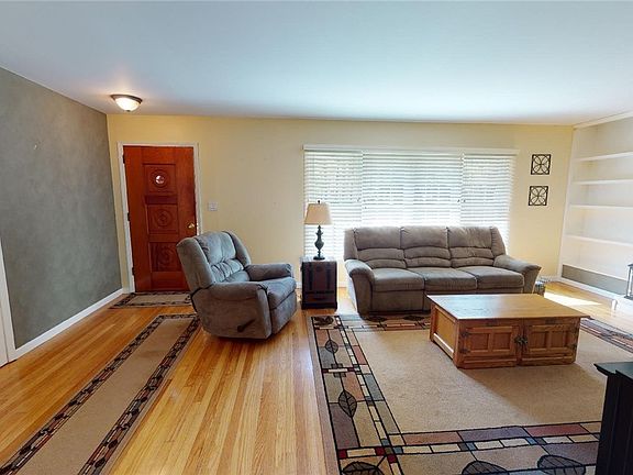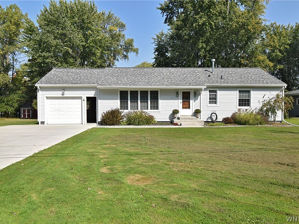 Desirable ranch located in East Aurora with Iroquois schools. Large eat-in kitchen that allows lots of room for cooking and gathering. Spacious living room with hardwood floors and built-in bookshelves and gas fireplace. Full basement accessed through the garage. Park like yard with goldfish pond and deck with retractable Kohler awning. Recent updates include: Roof with transferrable warranty (2019), HW tank (2019), furnace (2017), driveway (2018), Kohler Awning (2019).