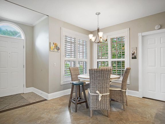 Granite countertopsWindows feature plantation shuttersVolume ceilingsStainless steel appliancesWhite kitchen