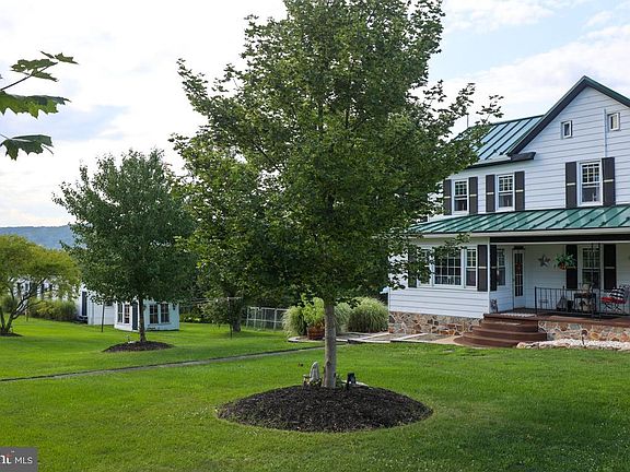 Beautiful 1936 Farm House on 3.46 pristine acres with Valley and Mountain views. Relax on the wrap around porch and experience the most stunning sunrises along with evening mountain sunsets enjoyed by the large rock fire pit. Home still has an old charm with wide baseboard trim and trim around the Christian wood doors. Kitchen has a warming tongue and groove pine ceiling with above and under cabinet lighting. Brick detached 3 car garage with storage above. Large building on the property is equipped with a carpenters workshop, hay bin or additional storage and a grain bin section. Refurbished chicken coop used as a children's playhouse and or potting shed. There is even a 2 stall barn with power and water and green lovely pastures plus a seasonal creek. Such an easy commute either way 22/322 is just at the end of the country road and 11/15 is a quaint ride through town and you are on your way. Come and view this peaceful place you will not be disappointed.