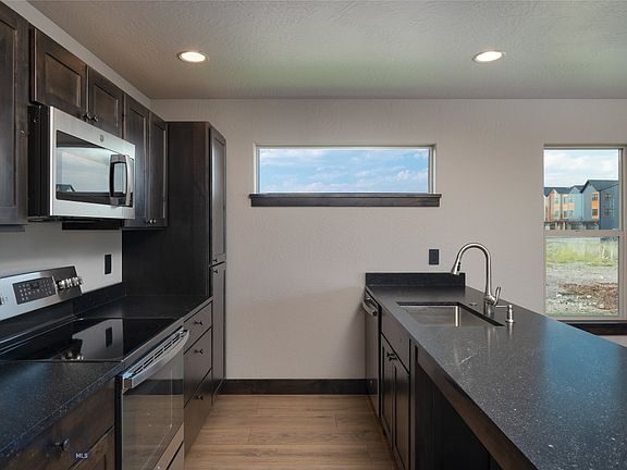 Offering all the modern amenities this well built and architecturally designed 2bed/2bath home is ready for you to move in. Making good use of space of the 914 square feet, this home offers a nice floor plan that is open with well placed windows, quality finishes including knotty alder doors and trim, Legrand upmarket outlet and switches, custom cabinets throughout and luxury vinyl plank flooring in living area and bedrooms. The kitchen features all GE stainless steel appliances, black granite countertops with breakfast counter. Primary bedroom offers a walk in closet complete with custom built shelving and drawers and a private bath with rain shower. Both bathrooms feature tile flooring, black granite counters, custom cabinets, Kohler toilets and sinks and Moen fixtures. Home is insulated with 3.5" spray foam insulation and 2" spray foam insulation on foundation walls. Electric forced air furnace and CENTRAL AC! Attached single car garage is FINISHED with insulated automatic door, remote and keypad. The yard is fully landscaped with perennials, shrubs, trees, lawn and underground sprinkler system with a drip line to EVERY plant and tree. Additional parking space to garage!! Exterior features prestained ship lap fir. Square footage according to owner.