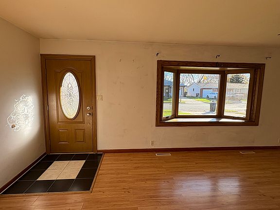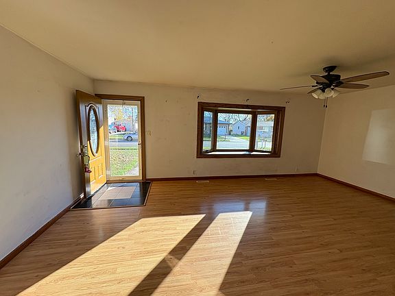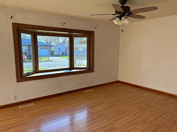 Nice ranch home!! Spacious living room with beautiful bay window and decorative front door. 3 nice size bedrooms. 2 full baths. Kitchen has newer appliances. Home features newer siding, windows, furnace, gutters, sump pump. Front, garage walk-out and storm doors were recently replaced. Also a newer garage door and opener. Partially finished basement with a bar area. Washer and dryer stays. Back door opens to a patio and a large partially fenced-in yard. Close to Parks, public pool, interstate roads. Roof needs replaced 10,000 credit will be given at closing. Being Sold AS-IS