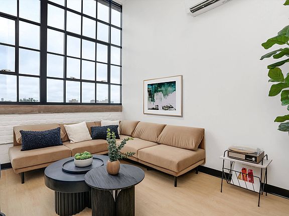 Elevated loft livingHistoric landmark buildingGranite countersClever storageOpen-concept kitchensExpansive industrial windowsStainless steel appliances