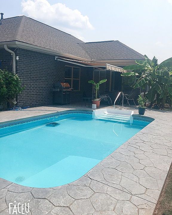 ATTENTION FAMILIES, house with private swimming pool. ALL BRICK RANCH home build in 2014 for single story living with beautiful landscaping and beautiful backyard overlooking distant mature trees and you will love hanging out with family and friends with a private SWIMMING POOL. The house is located in a quiet cup-de-sac side the Savanah Pointe subdivision in the Five Forks area. It is conveniently located near Woodroof Rd, shops, restaurants, GSP airport, BMW, etc. This 1621 square foot single family home has 3 bedrooms, master with walking closed and 2.0 bathrooms, spacious sun room and garage for 2 cars . As you enter the house you will notice the beautiful lights in the ceiling, open concept living/ dining and hardwood flooring. Granite Kitchen countertops with subway tile backsplash, breakfast bar, bay window in dinning room also granite vanity tops in all full bath. The spacious sun run is incredible beautiful with access to the pool. The house was build in 2014 but we moved in 2015. We added the swimming pool years ago. The type of foundation is concrete slap. The house is in a very good condition like a new one. Offers direct to the owner, no Realtors.