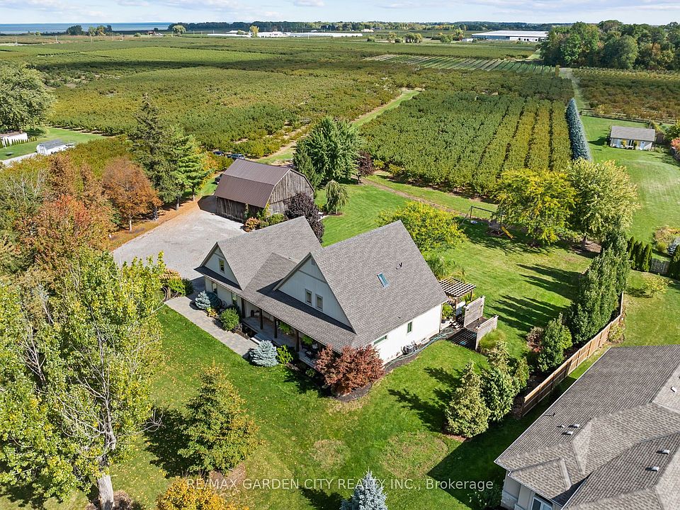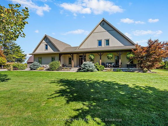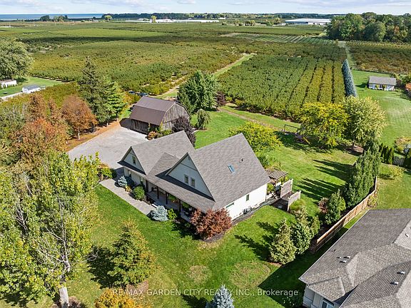 Welcome to 411 Read Road, Niagara on the Lake where timeless charm meets modern convenience in the heart of wine country. This beautifully maintained home, built in 2011, offers over 2,400 sq ft of thoughtfully designed living space on a 1.2-acre lot, combining the peace of country living with the benefits of city water and a high end septic system. Step onto the large covered front porch, perfect for morning coffee or sunset views, and enter a grand foyer with an elegant sliding door concealing a functional back hall. Here you'll find a spacious mudroom, laundry area, and access to the oversized triple garage. At the heart of the home is a warm and inviting living room featuring a cozy gas fireplace and two sets of garden doors that open to the back deck, offering seamless indoor-outdoor living. The dinette area easily accommodates a large table, flowing into a gorgeous kitchen with generous cabinetry, brand-new quartz countertops, and a stunning backsplash perfect for entertaining or everyday living. A neatly tucked-away office nook provides a quiet space to work or study. The main floor primary suite is a private retreat, featuring his and hers walk-through closets and a luxurious 4-piece ensuite with a soaker tub, corner shower, and stylish vanity. Upstairs, two massive bedrooms each boast walk-in closets and share a 4-piece ensuite, ideal for family or guests. The finished basement offers comfortable additional living space with in-floor heating, 9 ft ceilings, and a fourth bedroom. Outside, enjoy unobstructed orchard views, a huge deck, hot tub, and ample yard space perfect for kids, entertaining, or even adding a pool. A bonus barn offers dry storage, with a newer steel roof. Above the garage, theres potential for an in-law suite or studio, giving you options for extended family or additional income. If you're dreaming of a country lifestyle without compromising on modern comforts, now is the time to make this Your Niagara Home.