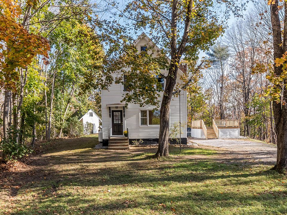 Welcome to Richmond, a charming town along the picturesque Kennebec River with its downtown and stately older homes, an homage to its shipbuilding heritage. Stop for a drink at The Old Goat pub or set off on a kayaking adventure from the public boat launch, with easy access to scenic Swan Island with its miles of hiking trails. Just a couple of miles from the village, discover 411 River Road, a timeless 1925 farmhouse-style home recently having undergone a top to bottom refresh. The expansive first floor offers an inviting eat-in kitchen, separate dining room, cozy den, living room with stone hearth and gas fireplace, and a convenient half bath with laundry hook-ups. Venture upstairs, where you'll find a primary bedroom with built-in shelving and two additional bedrooms, one with an enchanting built-in bed platform. The bath offers a tiled shower and separate soaking tub, both perfect for unwinding after a long day. A spacious family room on the second floor ensures there is plenty of space for all your needs. Efficient propane monitors serve as the primary heat source, and the gas fireplace lends a cozy feel to the living room. Step outside and enjoy the tranquil wooded surroundings from the covered porch overlooking the yard, which is complete with an above-ground pool with deck, and a handy shed. This home is ready to go and eagerly awaits its lucky new owners!