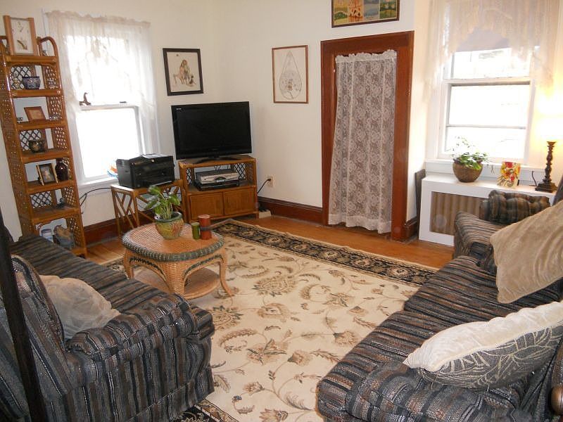 Here is a rare opportunity to own a home that was well constructed w/attention to details & maintained with pride. This magnificant colonial features 9 ft beamed ceilings, built-in cabinetry & windowseats, hardwood floors, custom wood trim, and plenty of character! The freshly painted interior features 4 large bedrooms w/cedar lined closets, 2 full bathrooms, oversized halllway/foyer area, and a full attic with flooring. The country kitchen features custom cabinets, a built-in pantry and opens to a 30'x40' terrace. The formal dining room & living room have custom beamed ceilings & exit to a private, covered porch. Freshly painted and newly insulated siding in 2010 & newly constructed roof in 2011. Ample driveway parking, detached garage & beautifully landscaped yard complete the look of this timeless home!