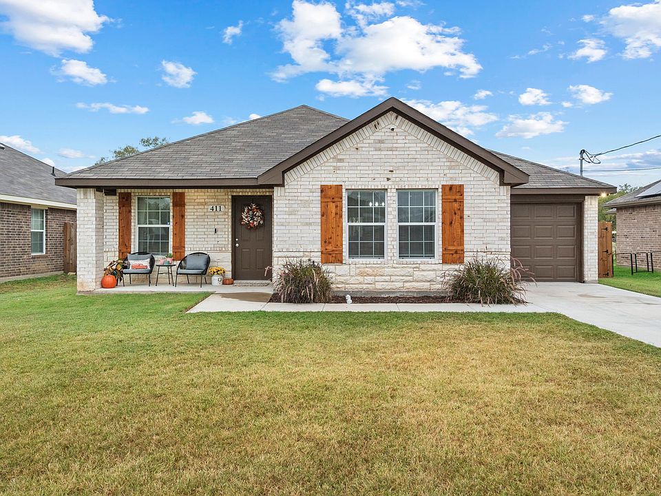 This delightful move in ready home offers the perfect blend of modern finishes and thoughtful design. Built in 2022, this immaculate residence boasts a spacious open concept living space that is anchored by a large kitchen breakfast bar offering room for extra seating. The kitchen is complimented by an abundance of cabinet storage, stainless steel appliances, a walk in pantry and a generous dining space. Throughout the home recessed lighting and ceiling fans provide comfort and ambiance, while luxury vinyl plank adds durability and elegance. All three bedrooms are spacious and each offer a walk in closet, while the primary provides its on private bathroom. For outdoor enjoyment, relax on the front porch or enjoy the private fenced in back yard that includes a large patio for grilling, fire pit and a storage building. This dream home has it all - schedule your showing today before it slips away!