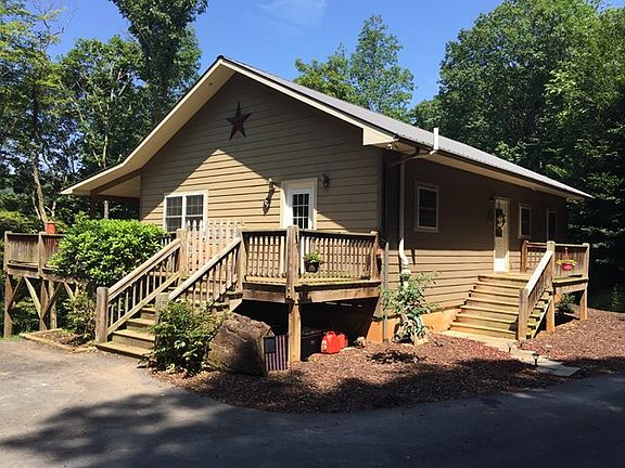 Come and see this beautiful 3 bedroom/3 bathroom home nestled among the trees and tucked back in a nice, quaint community. This is the ideal property for anyone wanting a little privacy but still close enough to Hwy 74 to be in Sylva, Waynesville or Cherokee within mintues.The lot has beautiful landscaping and a circular paved driveway for easy access. When you walk through the door on the main level you are welcomed by an open living/kitchen area with vaulted ceilings, gas log fireplace, hardwood floors and two areas to access either the covered porch or open deck. The kitchen has custom maple cabinets, stainless steel appliances including a gas top oven/range, corian countertops, new tile backsplash,under cabinet lighting and spacious island. Main level also features spacious master bedroom suite with walk in closet, hardwood floors,double vanity in bath & tile floors.There is also a guest bedroom and bath on the main level. Lower level features huge bedroom with tile floors, walk in closet, full bath and laundry room. Nice fenced in area for dogs off lower level as well as additional parking.