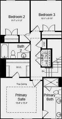 Handy drop zoneCovered deckTwo-car garageWalk-in pantryNearby powder roomWell-appointed primary suiteGray cabinets
