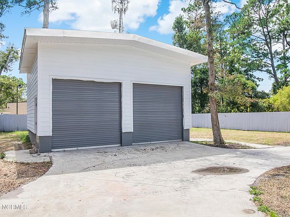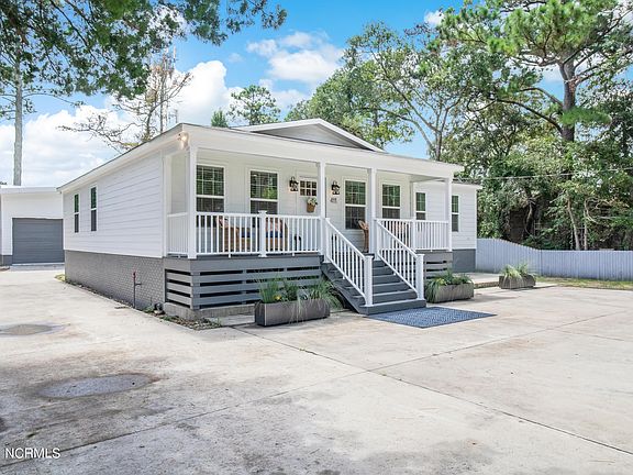 This totally remodeled Southport beauty has been exceptionally well constructed with special attention given to both the structural integrity of the home and the attractive, modern appearance. The renovation was completed in 2020 and nothing has been overlooked. The owners have even catered in a big way to boat, car and RV enthusiasts with the brand new oversize garage, fitted with water and power hookup for RV. It also has 2 spacious storage rooms. There's plenty of parking and the property is fully fenced and gated .The home itself exudes charm, starting from the welcoming front porch. Once inside, you'll notice the special touches that have been added, like the porcelain farmhouse sink, the wicker lights, the attractive granite island and the stylish furnishings and decor. All living area and bedroom floors are easily maintained luxury vinyl. The layout of the home is unique because it has a hallway to the left of the kitchen that leads to 3 bedrooms and a full bath, and a hallway to the right of the kitchen which offers a completely private primary suite. The hallway has custom built shelving and cupboards and the primary suite has a spacious bedroom with walk in closet and a luxurious bathroom with a freestanding soaking tub, and a steam shower. At the end of the hall, there is also a room with a washer and dryer, a pet shower and a sitting area and a rear entrance to the back yard. And, if that's not enough, all interior doorways and the steam shower are wheelchair accessible. You don't want to miss this opportunity. You could be living in this amazing, move in ready home in an established neighborhood and riding your bike into town in no time! Life is good.