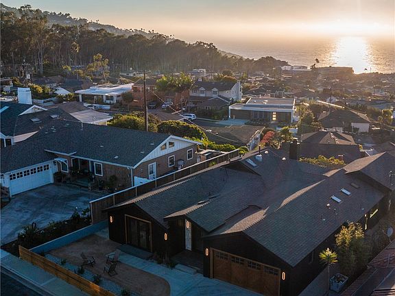 Outdoor living is equally impressive, with multiple view decks oriented toward the Pacific, blending indoor comfort with breezy coastal elegance. The contemporary exterior showcases stone and wood accents, complemented by drought-tolerant landscaping and a two-car garage with custom doors.