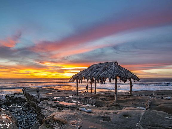Welcome to this light, bright, sunny home in the desirable neighborhood of Windansea Beach. Main house is 1,251', 2 bedrooms, 2 bathrooms highlighted by hardwood floors, updated kitchens with marble/granite countertops/stainless appliances and cozy fireplace in the living room. The home was thoughtfully expanded to enlarge the primary bedroom, create a den and add the dining area. The garage was converted to a versatile studio with bathroom and kitchenette for guests/office/art studio. Generous front yard can be fenced for privacy or play area. Ample parking for multiple cars on driveway. Seller has permitted plans to build a front porch. New roof in 2024. Close proximity to La Jolla Bike Path and beach. La Jolla Schools. Prime redevelopment/expansion potential.