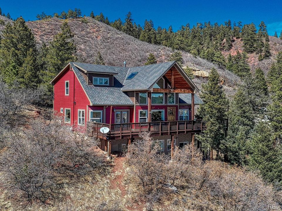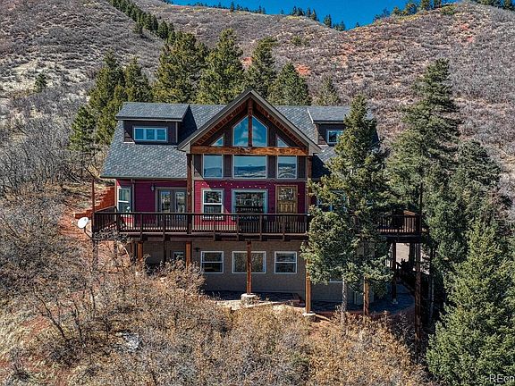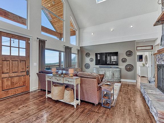 acre lot in Palmer Lake. This is the lifestyle you’ve been looking for with hiking and biking trails, plus paddle boarding right outside your door. National forest is your backyard! 5 bedrooms, 4 baths, an office, and an oversized 2 car garage. When entering this home you are greeted with soaring ceilings and walls of windows. Numerous rustic/modern touches, with east-facing windows that provide for the ultimate sunrise to enjoy coffee or the alpenglow in the evenings. This home has history with the reclaimed wood kitchen island and 100 yr old fireplace mantel to the interior doors to the bathroom vanities. Enjoy entertaining in the gourmet kitchen, featuring granite countertops, new high-end appliances, including a 6 burner Ilve range, 2 sets of double ovens, wine bar, warming drawer, plus 2 pantries.The master bedroom suite provides gorgeous views from picture windows, with walk-out access to the large deck. Enjoy relaxing in the cast iron antique tub. Enjoy the amazing custom closet. The upper-level features 3 bedrooms and full bath and plenty of storage. The walk out basement features a living area, gas fireplace, bedroom, full bathroom, laundry room, mud room with custom cabinets for storage. The large deck offers front-row seats to one of the most spectacular places to enjoy 4th of July and all of Palmer Lake. Additional features: professional drapes, Lutron shades, whole house water filtration system, new furnace & AC, new architectural class 4 shingles, laundry chute, newly painted interior and exterior, 4 new skylights, beautiful chandelier and pendants, and full home window/door security system with Ring cameras. This home will exceed your expectations on all levels! Easy access to I-25 Denver/Colorado Springs. Close to the downtown shopping & restaurants.