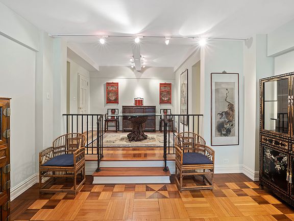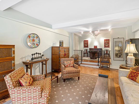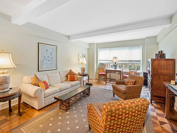 This beautiful Art Deco-style, prewar building at the prime corner of West End Avenue and West 80th Street affords you gracious living quarters, full-service amenities, and a fabulous location mere moments from everything the Upper West Side has to offer. As you enter apartment 5E, there is a gracious foyer which flows into a dining area that can double as your home office. The expansive sunken living room space is both wide and deep where one can imagine great gatherings or wonderful quiet nights at home. The open step-up dining area affords an easy flow for entertaining. High beamed ceilings, classic hardwood floors with stunning inlaid borders, and large picture windows allow for lots of natural light and a view of the tree-lined street. The kitchen is well maintained and has a window overlooking the rear city-scape of the building. There is a hall of spacious closets leading to the large bedroom that fits any amount of furniture you desire due to its fantastic proportions. The bathroom is windowed and has a wonderful charming effect. Another benefit to this art deco floor plan is the four oversized closets that will satisfy all of your storage needs. Built circa 1931, 411 West End Ave is a well-maintained co-op building with classic art deco details, a 24-hour doorman, live-in super, bike room, and on-site storage available. The coveted address is close to such premier Upper West Side attractions as Riverside Park, the Hudson River Promenade, 79th Street Boat Basin, Zabar's, Fairway, Trader Joe's, The Museum of Natural History and so many other conveniences. Pets, pieds-a-terre, and washer-dryers are allowed with board approval.
