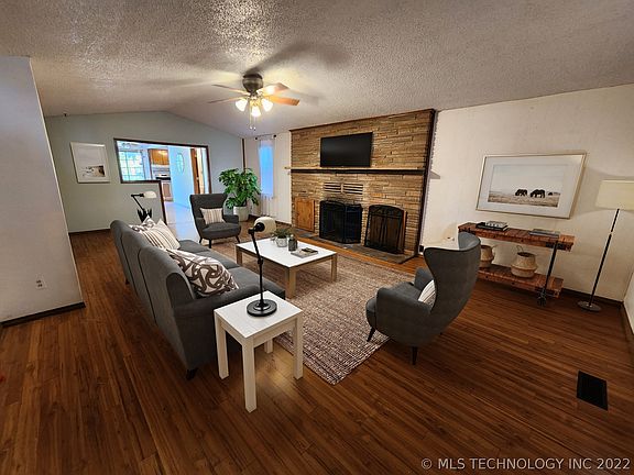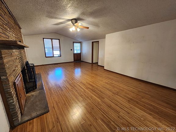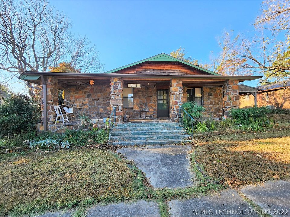 Beautiful, full stone house within walking distance of historic downtown Tahlequah! This 1,811 sq ft (per AP) house sits on .36 acres and features 3 beds and 2 1/2 baths! This home has many amenities such as a decorative fireplace, new HVAC & furnace in 2021, and new roof in 2019! Basement features a half bath! Some original features can be found throughout the house. This large lot includes a spacious backyard that is fully fenced, a covered patio, storage shed with power, and a pond!