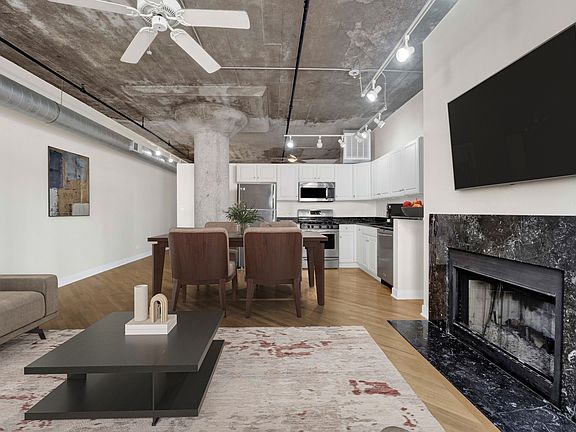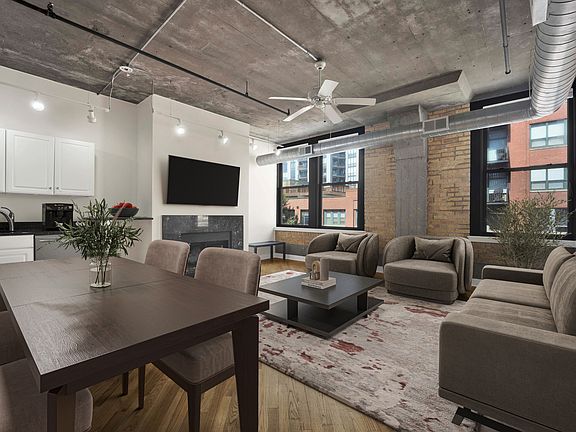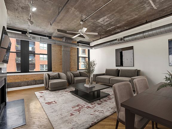 **Calling all loft lovers!** This River North gem checks every box-soaring cement ceilings, oversized industrial windows, abundant natural light, gleaming hardwood floors, secure heated garage parking, in-unit laundry, new carpet in the bedroom, wood burning fireplace AND a newly rehabbed bathroom! Enjoy the unbeatable energy of River North-where vibrant city life meets a neighborhood feel. The building offers 24-hour door staff, a fitness center with yoga room, and a stunning rooftop deck with skyline views. With over \$1M in reserves and rentals allowed, this is both a dream home and a smart investment. Pets welcome!