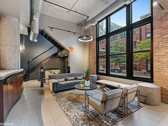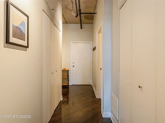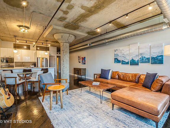 Welcome to this stunning oversized 1000 sq foot loft one-bedroom located in the heart of fabulous River North! Recently renovated to perfection, this modern artistically influenced expansive open floor plan is flooded with natural light! The kitchen design is fully integrated and a chef's dream!This unit offers concrete ceilings and pillars, hardwood floors, wood burning fireplace, balcony with dazzling south views, in-unit laundry, custom lighting, remodeled bath, amazing fitted closets for a one-bedroom. Building amenities include a sensational roof top deck with 3 BBQs for your use 24/7, outdoor furniture and beautiful landscaping very zen also a very well-equipped workout and yoga room, bike rooms, storage locker, package receiving room on-site manager and one parking space set up as an attachment to the unit so no extra tax or assessment. Pets welcome. The neighborhood offers two dog parks and of course a people's park as well, great restaurants, shopping and entertainment for your pleasure!