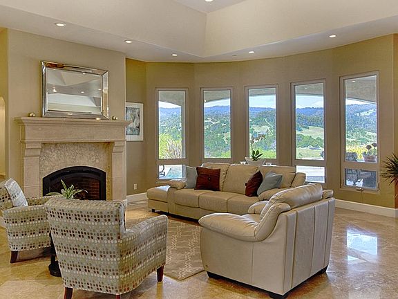 Custom Mediterranean style home set on knoll with breathtaking views of surrounding Aptos hills and vineyards. Only 10 years old built in 2008. Dramatic private 11 acre setting with swimming pool highlighted by waterfalls and spa. Majestic open floor plan on one level features travertine floors and high ceilings with gourmet kitchen and spacious living room and family room. Master suite wing overlooking pool and waterfalls and 3 more junior master suites. Vineyard ready property with Newly planted olive orchard . Located along the popular Aptos Hills wine and bike trail and just minutes to Seascape beach and freeway.