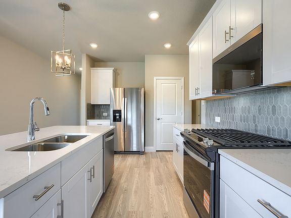 The heart of the home is a stunning kitchen equipped with a large center island, stainless steel appliances, plentiful cabinetry, and a walk-in pantry ideal for everyday cooking and entertaining guests. The open-concept floorplan seamlessly connects the kitchen, dining, and living areas, creating a bright and welcoming atmosphere throughout.