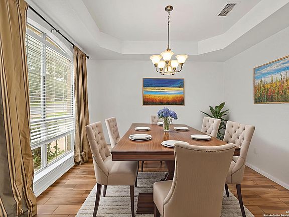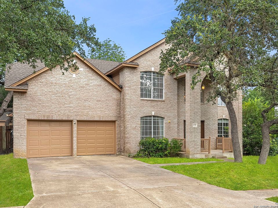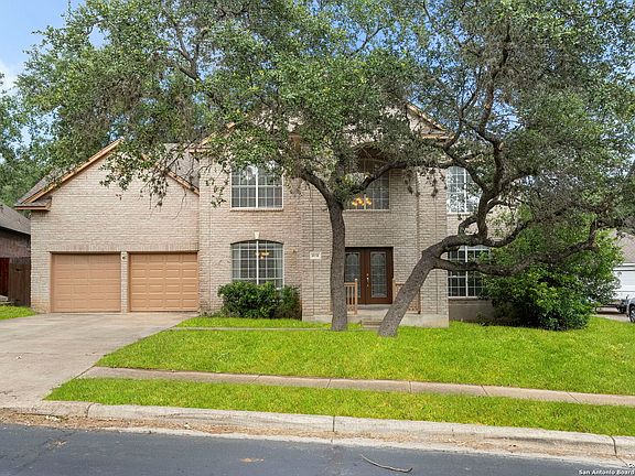 Tucked away in a quiet cul-de-sac within a gated community, this beautiful two-story brick home blends comfort, style, and convenience. With 4 bedrooms and 2.5 baths, the flexible layout includes a formal dining room and a formal living area on the first floor that could easily serve as a home office. The inviting family room features a gas fireplace and double doors that open to the backyard. The kitchen is a chef's dream with rich wood cabinetry, granite countertops, gas cooking, and double ovens. Upstairs, the spacious primary suite offers a sitting area and a en suite bath with a large walk-in shower and double vanity. The backyard includes a large storage shed-perfect for tools, hobbies, or extra storage. Recent updates include fresh paint throughout home, carpet, and roof. All this with quick access to Highway 151 and Loop 1604 for an easy commute and nearby amenities.