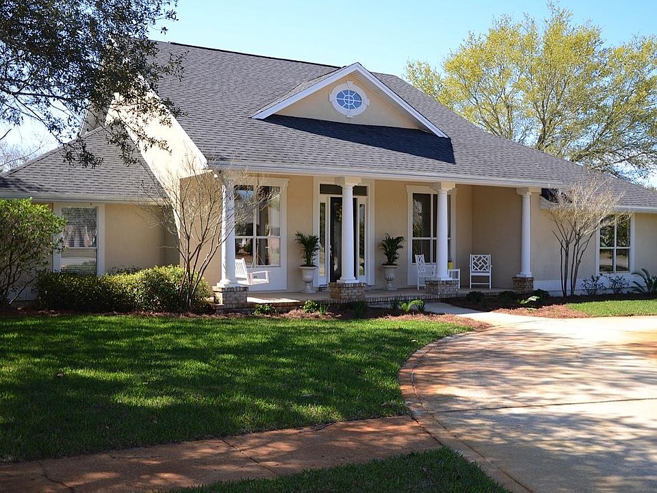 Awesome custom built home with many upgrades! 10 foot ceilings with crown molding throughout, recessed lighting and custom light fixtures, split-bedroom plan, large living area with gas fireplace and built-in cabinetry, office with built-in bookshelf, dining room, breakfast room, large front and rear porches. Master bedroom has gas fireplace, built-in cabinetry, triple trey ceiling and door to rear porch. Master bath has whirlpool tub, separate glass shower and huge walk-in closet. Kitchen with Mesabi black granite with full granite backsplash and stainless steel appliances. All appliances included. Large double car; side entry garage with built in cabinets and work area. Ample parking with a circular drive in front located on corner lot. Storage galore throughout the house! Three utilityclosets and large closets in bedrooms, huge attic for additional storage. Gas heat, gas water heater, 2 gas fireplaces. New 30 year multi-dimensional shingle roof was installed March 2010. Complete new A/C unit installed May 2013 (both attached with survey & disclosure.) Stucco was refinished with elastomeric stucco in 2010. Inside and outside of home has been well maintained.