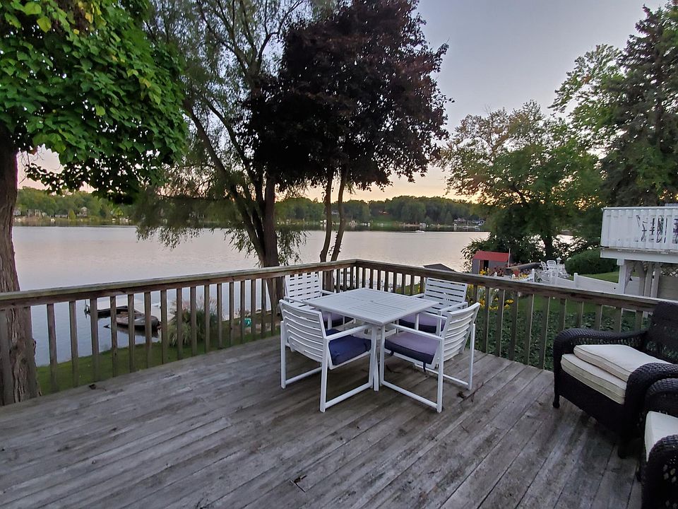 Very nice 2 bedroom 1 full bath lakefront home with central air-conditioning. 2 car attached garage. Picture window in livingroom overlooking the lake. Large deck overlooking the lake with a southern exposure. Washer dryer and floating dock. Very quiet setting. Stone fireplace.