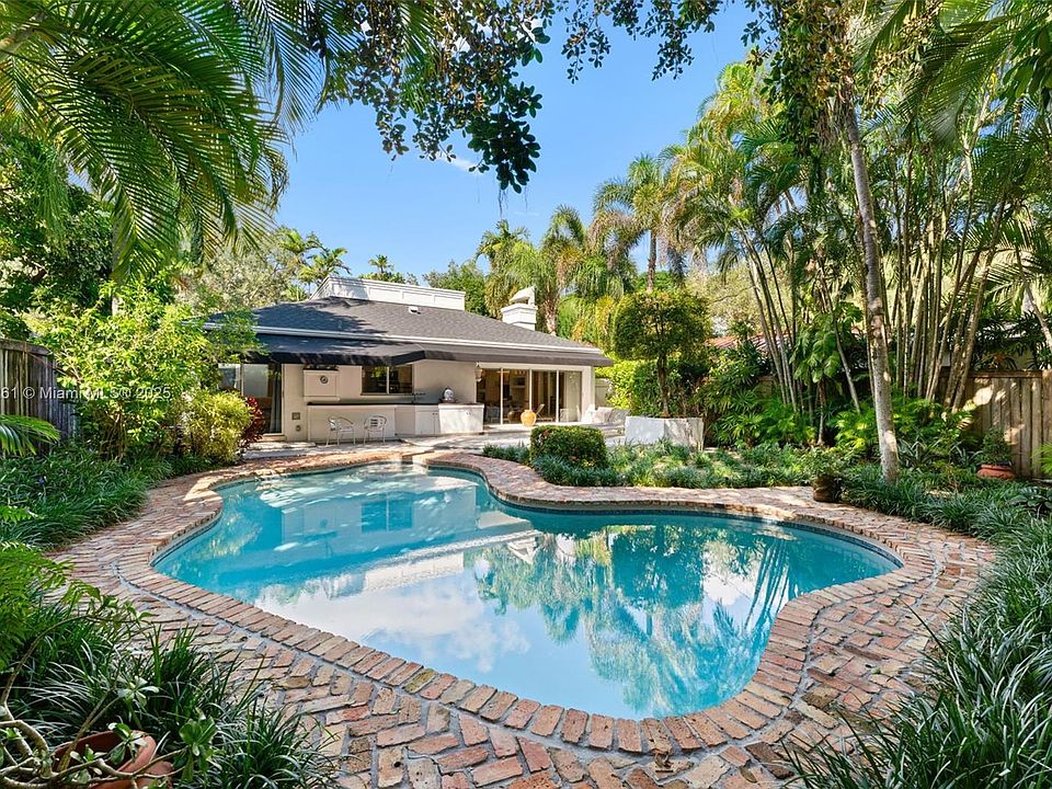Timeless. Welcome to 4110 El Prado. This move-in-ready Coconut Grove residence blends classic Grove character with modern design and thoughtful upgrades. Built as a 3-bedroom and currently configured as 2 plus a den, it features elegant travertine floors imported from Italy, bright skylights, and a renovated primary bathroom. The private pool and manicured backyard create a tranquil retreat, perfect for entertaining or everyday relaxation. With a new roof completed in 2023 and located outside a flood zone, this home offers lasting quality and peace of mind. Set on a quiet, tree-lined street near parks, marinas, top schools, and Grove Village shops, it delivers a true Coconut Grove lifestyle under $2 million.