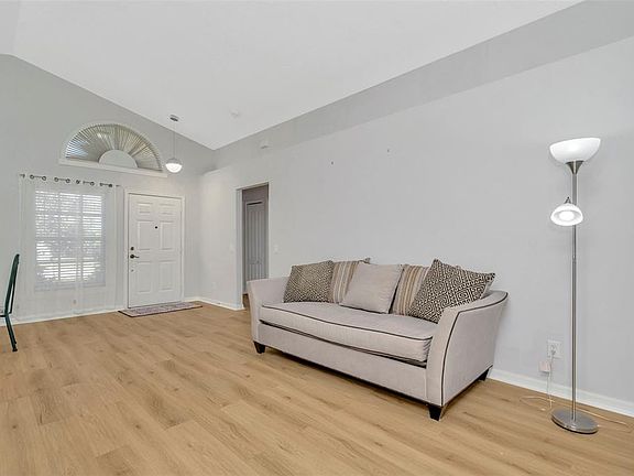 Your new home welcomes you. This beautifully updated classic ranch style home is located in the coveted gated Oakstead community. This charming home features three bedrooms, two bathrooms, open large living area and an enclosed porch. Recent upgrades include new wood shaker kitchen cabinets and new LVP flooring installed throughout the main living areas and all bedrooms. Kitchen features stainless steel appliances with breakfast bar. Inside laundry closet with included washer and dryer is conveniently located adjacent to the kitchen. New roof installed in 2025. The master bedroom features two walk-in closets; the master bathroom has a double vanity, tub and shower. Storage shelves in garage. Living in Oakstead provides access to an exclusive, gated community lifestyle. The amenities include clubhouse, resort style pool, splash pad, playground, fitness center, tennis and basketball courts. Low HOA fees. This prime location in Land O'Lakes is highly desirable, with exceptional schools, Elementary, Middle, and High School at a close distance. Community is conveniently located near shopping, dining, entertainment, and major highways allowing easy access to Tampa, Wesley Chapel, and surrounding areas. Don't miss out on this wonderful opportunity!