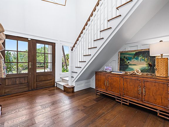 Welcome to your coastal sanctuary in Joe's Point on Hutchinson Island, where luxury meets serenity. This stunning waterfront estate offers the ultimate in coastal living. You have the Intracoastal Waterway right at your doorstep plus your own private beach access across the street. Completely remodeled down to the studs with meticulous attention to detail, this residence boasts the true ''Old Florida'' elegance with a timeless design. As you enter, you'll be greeted by expansive water views and an abundance of natural light. The traditional layout is perfect for both entertaining and relaxing, featuring stunning hardwood floors, a gourmet kitchen with top-of-the-line appliances (Wolf and Subzero), custom cabinetry, marble countertops and exquisite finishes. The family room features a fireplace, built in bar with panoramic views of the water. The master suite is a true retreat, offering breathtaking views, your own walk out covered balcony space, spa-like ensuite bath completely custom with Calcutta gold marble, luxurious spa and a generous walk-in closet. Outdoor living is enhanced by a spacious covered patio, a resort-style pool, out door kitchen and lush landscaping that provides privacy and a sense of tranquility. Brand new seawall. Dock has lift and there are steps down to the water to launch your kayaks. Whether you're lounging by the pool, taking a stroll on your private beach, or watching the sunset over the water, this home offers an unparalleled lifestyle experience. Situated in the exclusive Joe's Point community, this property offers both seclusion and convenience, with easy access to the best dining, shopping, and recreational activities that Stuart and Hutchinson Island has to offer.