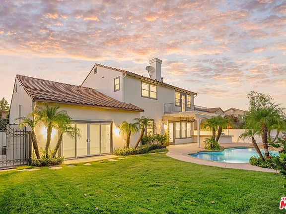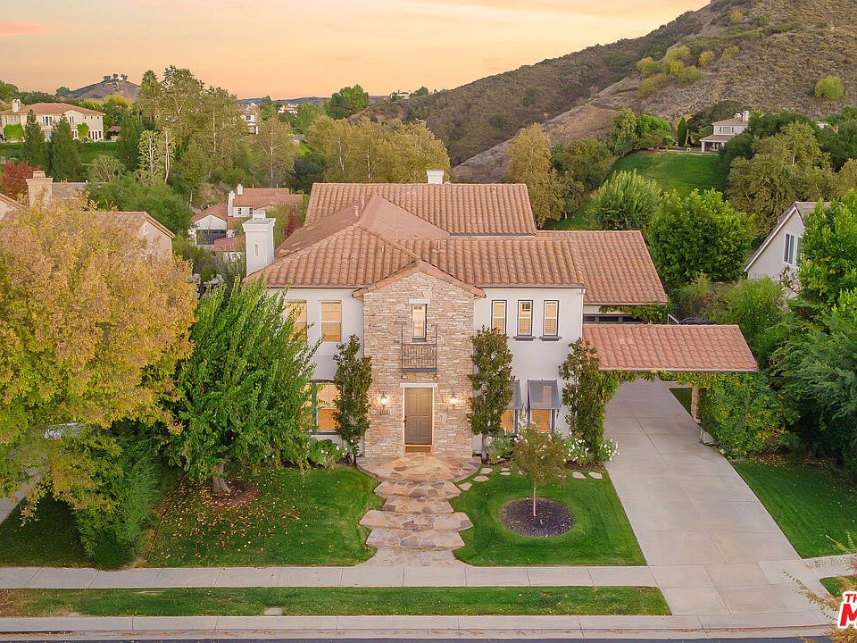 Set at the end of a quiet cul-de-sac within the prestigious 24-hour guard-gated community of The Oaks of Calabasas, this beautifully upgraded residence offers approximately 5,000 square feet of refined living. Newly refreshed and filled with natural light, the home features an open and inviting floor plan with 5 bedrooms and 5.5 bathrooms, along with thoughtfully designed living spaces ideal for both relaxed everyday living and stylish entertaining. The reimagined chef's kitchen is a true highlight appointed with top-tier Wolf appliances, dual Sub-Zero refrigerators, Miele espresso machine, built-in microwave, warming drawer, and an additional mini wine refrigerator. An expansive center island anchors the space, creating the perfect setting for cooking, gathering, and hosting. All major appliances were newly installed in 2021. Additional living spaces include a formal dining room, elegant living room, two family room TVs, and a dedicated home office with a fireplace on the main level. A spacious downstairs ensuite bedroom is joined by an extra bonus room ideal for a playroom, media space, or fitness studio. Upstairs, a second custom office with built-ins complements three ensuite guest bedrooms and a luxurious primary suite featuring a private balcony, cozy fireplace, spa-style bath, and a generous custom walk-in closet. Designed for relaxation and outdoor living, the serene backyard showcases tranquil mountain views, sparkling pool and spa, fire-pit, covered patio with built-in heaters and ceiling fan, and a built-in BBQ offering resort-style living in the comfort of home. Residents of The Oaks enjoy exclusive access to world-class community amenities including a private clubhouse, Olympic-sized pool, tennis courts, basketball courts, state-of-the-art fitness center, and more. Ideally located within the award-winning Las Virgenes Unified School District and moments from premier shopping, dining, and freeway access, this exceptional Calabasas home offers luxury, privacy, and an unparalleled lifestyle.
