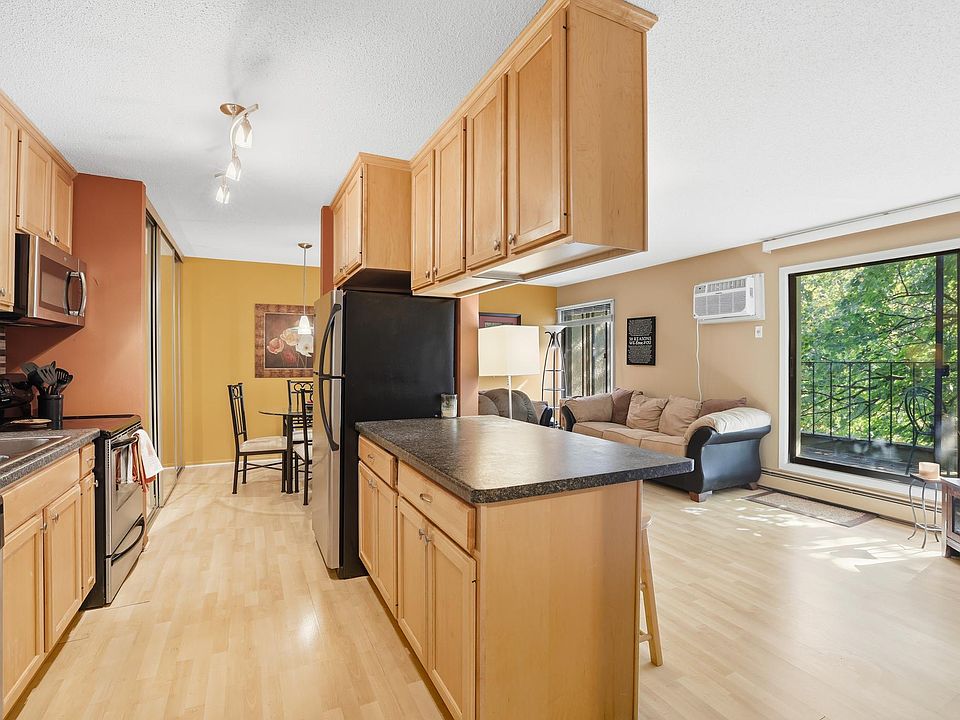 This clean and inviting 1-bedroom, 1-bath condo offers convenient living in a prime location near the airport, Mall of America, and more. The kitchen features stainless steel appliances and maple cabinetry, while the private deck overlooks a beautiful shade tree—perfect for relaxing outdoors. Enjoy great community amenities including shared laundry, a playground, dog park, and onsite gym. Unit includes one assigned parking stall (#88). Rentals are allowed, making this a fantastic option for both homeowners and investors.