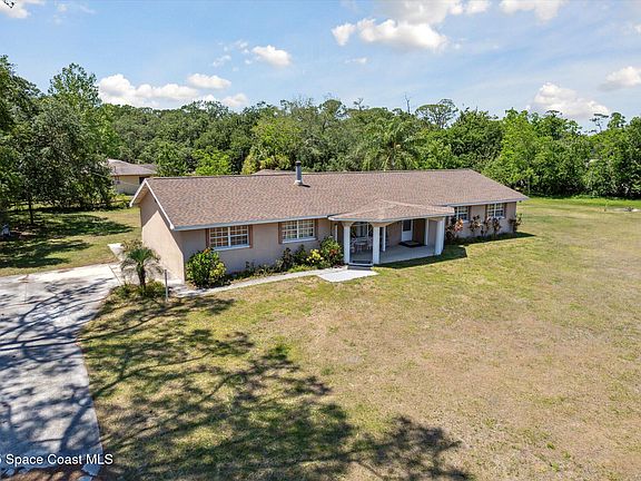SELLER OFFERING $10,000 CREDIT towards Buyer's Closing costs or interest rate buy-down! On a spacious 1.08 Acre CORNER Lot, this home offers room to spread out—complete with a sparkling screened in pool for cooling off during those upcoming Summer parties. Inside, the open kitchen features granite counters which flow into the dining room where a set of French doors brings in lots of natural light and provides easy access to the lanai/pool. The garage has been converted to provide a 4th bedroom plus a bonus room as well as ample storage. It could be reverted back, if desired. Other advantages include concrete block construction, 2024 Re-plumb with PEX piping, 2022 AC, Screen enclosure re-screened in 2022, 2019 Roof & a whole house cooling fan. Added bonus: Zoning allows horses for the horse enthusiasts! Located just minutes from I-95, Publix, shopping, and local restaurants, this home offers both privacy and convenience.