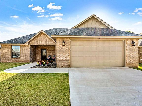 Welcome to this beautifully maintained, 2-year-old home located in one of Lawton’s most desirable neighborhoods! Built with care and craftsmanship by J Hawkins Homes LLC, this 4-bedroom, 2-bathroom residence combines quality construction with a functional, modern layout perfect for everyday living and entertaining. Step inside to discover an open-concept living area filled with natural light, featuring a spacious living room with gas fireplace and a stained wooden mantle, that flows seamlessly into the dining space and kitchen. The kitchen offers ample cabinet space, a walk in pantry, granite countertops and stainless steel appliances along with stylish finishes, and a large center island—ideal for hosting or casual family meals. The split-bedroom floor plan provides added privacy, with the primary suite offering a trey ceiling and a stained barn door that leads to the primary bath with granite countertops, double sinks, a jetted bathtub, a walk in shower and spacious closet with built in storage. Three additional bedrooms offer flexibility for a growing family, guests, or a home office. This home also features a covered patio, full lawn sprinkler and wooden privacy fence! Located in the sought-after Bishop Elementary School District, this home is close to parks, shopping, and dining, with easy access to major roads. Don’t miss your chance to own a newer, move-in-ready home built by a trusted local builder. Schedule your private tour today!