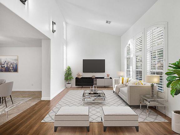 Step into this charming California Chateau Estate! Recently renovated with brand new floors, bathrooms, fresh paint, and an updated kitchen which includes stainless steel appliances. this home sparkles with modern charm. Featuring four bedrooms, three baths, and a den/office, there's plenty of room for your family to thrive. Relax in the large game room, admire the elegant shutters, and ascend the spiral staircase to the high vaulted ceilings that exude sophistication. Outside, the backyard oasis boasts a swimming pool, basketball court, and tranquil mountain views, creating the perfect setting for relaxation and entertainment. Nestled in a sought-after private neighborhood, this gem of a home is ready to welcome you