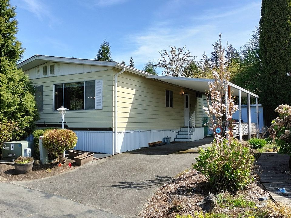 ***PRICE REDUCTION*** Your new home in this 55+ park is in great condition! New carpet, range, range hood, and dishwasher. Your home has beautiful sunset and mountain views from the living room. A large deck off back entry, built-in hutch and breakfast bar. Master has walk-in closet, 2 bedrooms, 1.75 baths, and covered carport. Close to Alderwood Mall and stores. All utilities are billed to owners. Sewer is flat rate charge