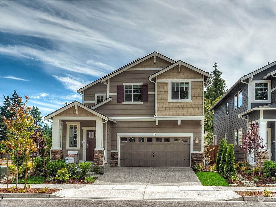 Welcome Home! Montevallo in Bothell is Lennar's newest community of 85 homes, right in the heart of Canyon Park and the North Shore School District. This 2989 sq. ft. Sequoia plan offers five spacious bedrooms, including one on the main floor with an attached bathroom. The elegant kitchen abounds with cabinetry and is centered with an almost 12' quartz island with seating for six. Lennar's unique value proposition is 'E.I.' or Everything's Included. This means everything from kitchen appliances, including the refrigerator, window blinds, air conditioning, home automation, rear fencing and landscaping and even a security system are all included in the list price. Amazing south-facing homesite! Move in March 2023.