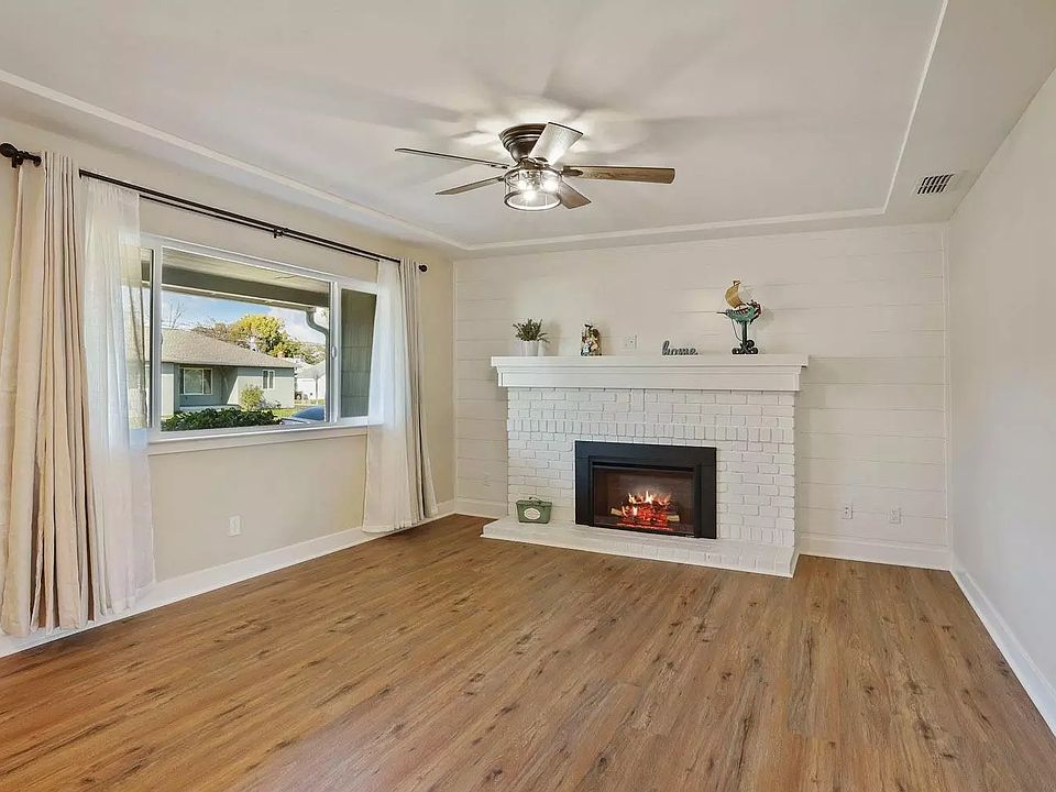 Electric fireplaceNew garage doorNew insulationNew doors and windowsNice size bedroomsGlass doorSmart opener